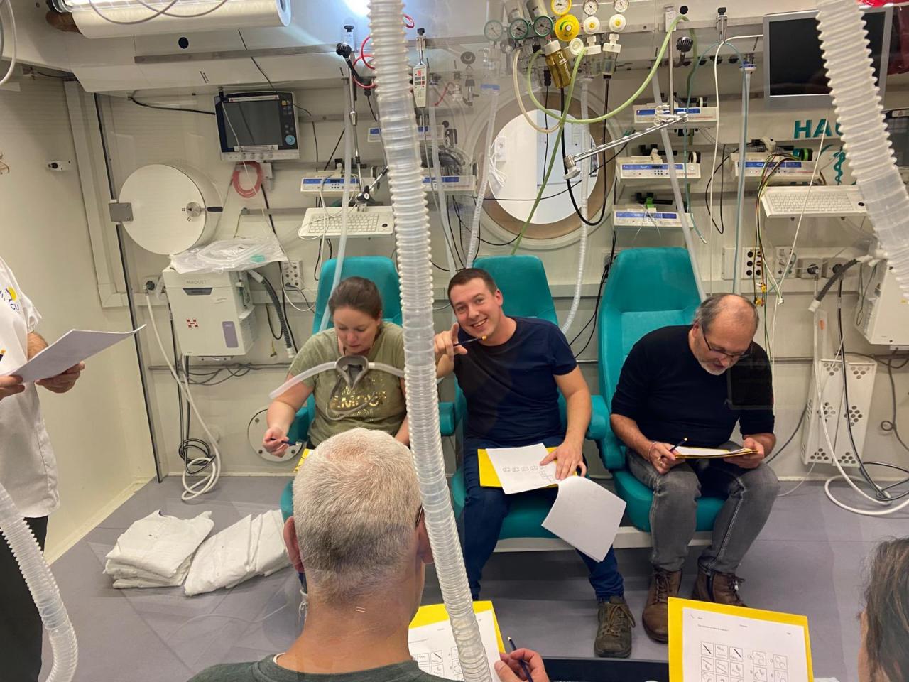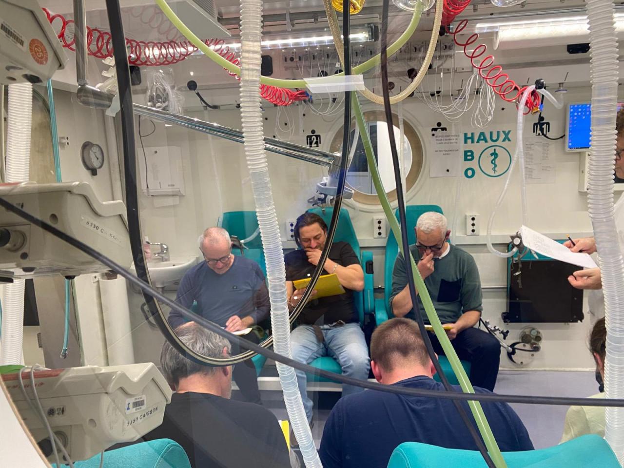 Ces séances au caisson peuvent être réalisées grâce au Dr. Patrick Girardie et à Oliver, l'opérateur qui nous permettent de réaliser désormais chaque année ces plongées pour nos formations. Un grand merci à eux !